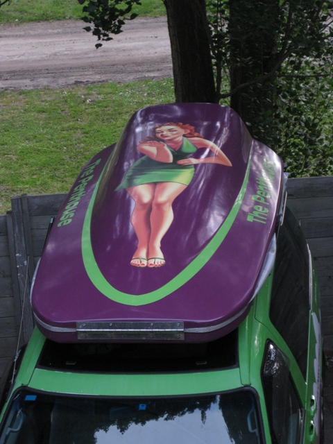 De gifgroene jucy camper Het dak met de ‘pin-up’ Cape Otway Lighthouse